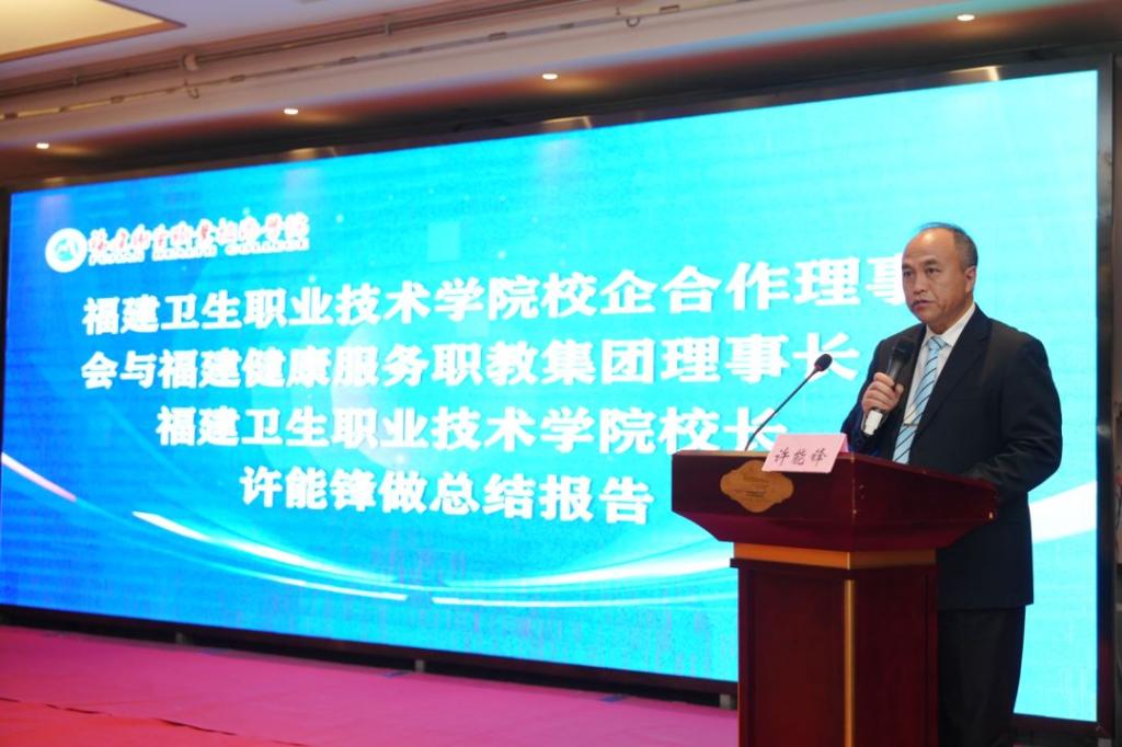 校党委书记曾武祈致欢迎辞。他表示,学校一直以来努力推动福建健康服务职教集团与校企(院)合作理事会的发展,并将继续主动扮演好医药卫生与健康服务职教改革发展的先锋角色,扎实推进“省级双高计划”建设,深化内涵建设,加快学校关键能力提升,为现代卫生职业教育体系建设改革和新福建发展贡献力量!