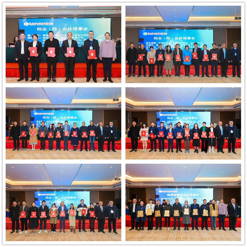 会议组织审议了学校校企(院)合作理事会、福建健康服务职业教育集团成员调整名单及修订后的章程,并为成员颁发聘书及证书。