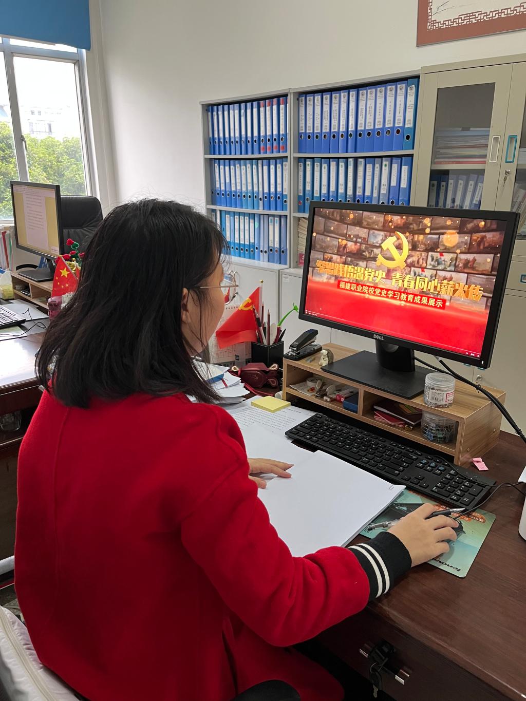 此次成果展展示了全省职业院校党史学习教育情况,使支部党员获益良多。通过观看学习,使大家接受了一次思想上的洗礼和深刻的党性教育,进一步激发了爱党爱国热情,也深感肩上责任重大,今后要把党史学习教育成果继续转化为推动各项工作的实际成效。