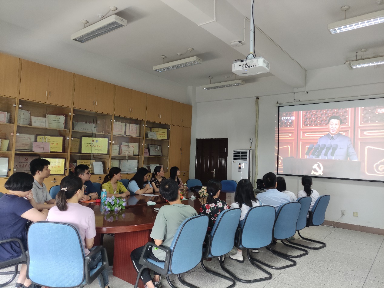 百年征程波澜壮阔,百年初心历久弥坚。7月1日上午,庆祝中国共产党成立100周年大会在北京天安门广场隆重举行,各界代表7万余人以盛大仪式欢庆中国共产党百年华诞。 医学技术系党总支组织党员师生收看庆祝中国共产党成立100周年大会直播实况,认真聆听习近平总书记重要讲话,见证激动人心的历史时刻,感受恢宏磅礴的庆祝氛围,接受了一次深刻而生动党性洗礼。