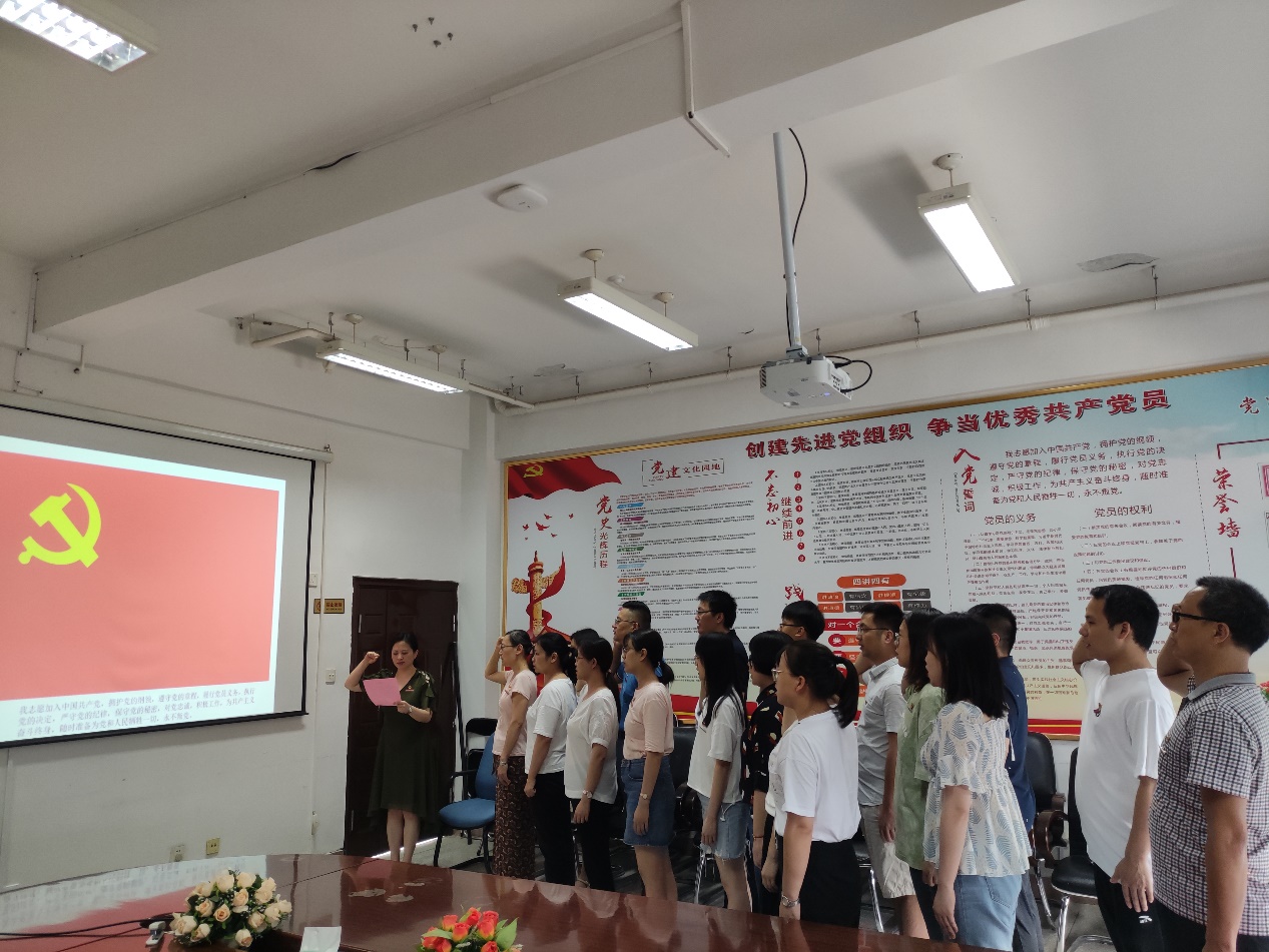 6月30日,为迎接党的百年华诞,赓续共产党人精神血脉,医学技术系党总支组织党员教师面向党旗庄严宣誓,重温入党誓词。