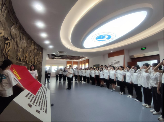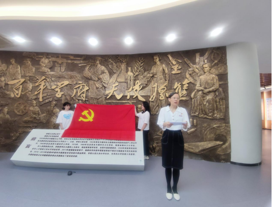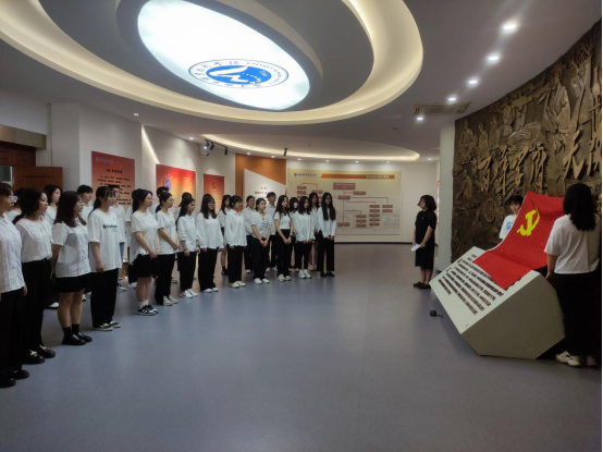 在学生第二党支部书记蒋程序同志带领下,敖昌群等预备党员面向党旗,举起右手,庄严宣誓,用铿锵有力的声音许下新时代共产党人郑重的承诺。掷地有声的誓言响彻校史馆,印证百年闽卫院人的使命担当。