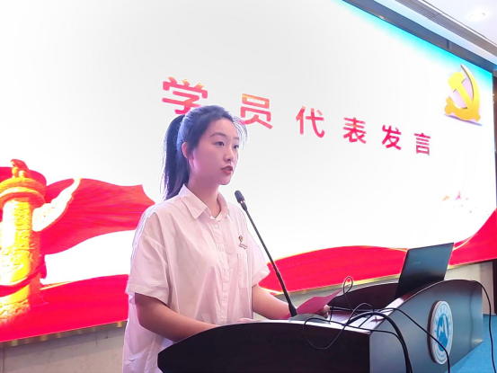 20设备302班的许佳慧同学作为学员代表发言。她表示通过培训班学习进一步感受到了党的伟大、光荣和正确,要以党校结业为新的起点,主动加强党的理论知识学习,执着践行,争取学有所获、心有所信、行更坚定,以实际行动地向党组织靠拢。