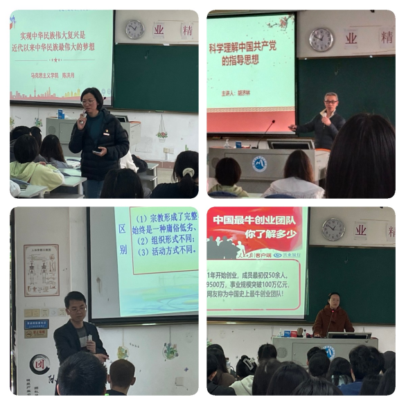 本期培训班邀请马克思主义学院老师为学员讲授党的基本理论知识。陈洪月老师以《实现中华民族伟大复兴是近代以来中华民族最伟大的梦想》为题,宣讲习近平新时代中国特色社会主义思想;胡济林老师以《科学理解中国共产党的指导思想》为题,引导学员们全面学习党的指导思想;龙慧以时间为脉络,深入解读《党史上的三个历史决议》;江洪老师讲授《马克思主义宗教理论与党的宗教政策》,引导学员们树立科学世界观。