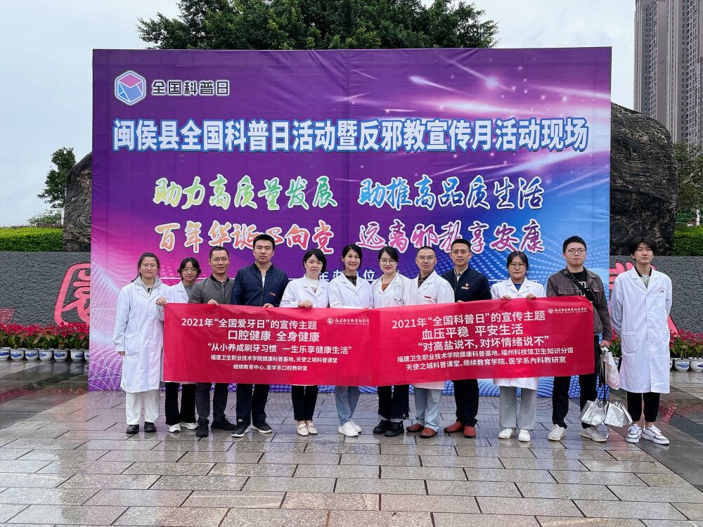 为推进慢病知识的基层普及,提高基层群众的慢病管理能力,充分发挥党员的先锋模范作用、发挥专业教师特长,2021年10月22日,医学系党总支第一党支部党员、内科教研室教师王芳、彭小蕊随开云继续教育学院、闽侯县科协一行赴闽侯县民俗园开展“高血压病防治”科普、义诊活动。