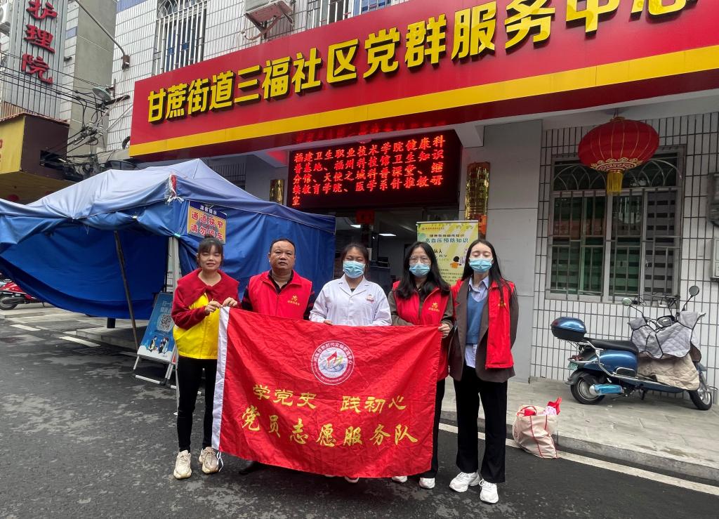 为充分发挥党员的先锋模范作用,普及慢病知识,提高基层群众对慢病的管理能力,2021年10月20日,医学系党总支第一党支部党员教师巫诗雨随闽侯县科协一行赴闽侯县三福社区开展“高血压病防治”科普活动。