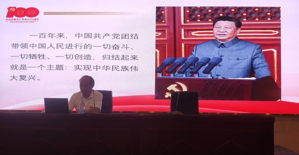 许能锋以“回望百年奋斗路 砥砺奋进新征程”为主题,从丰功伟绩恢宏史诗、精神血脉代代相传、以史为鉴、开创未来、笃行初心启航新征程四个部分娓娓展开。