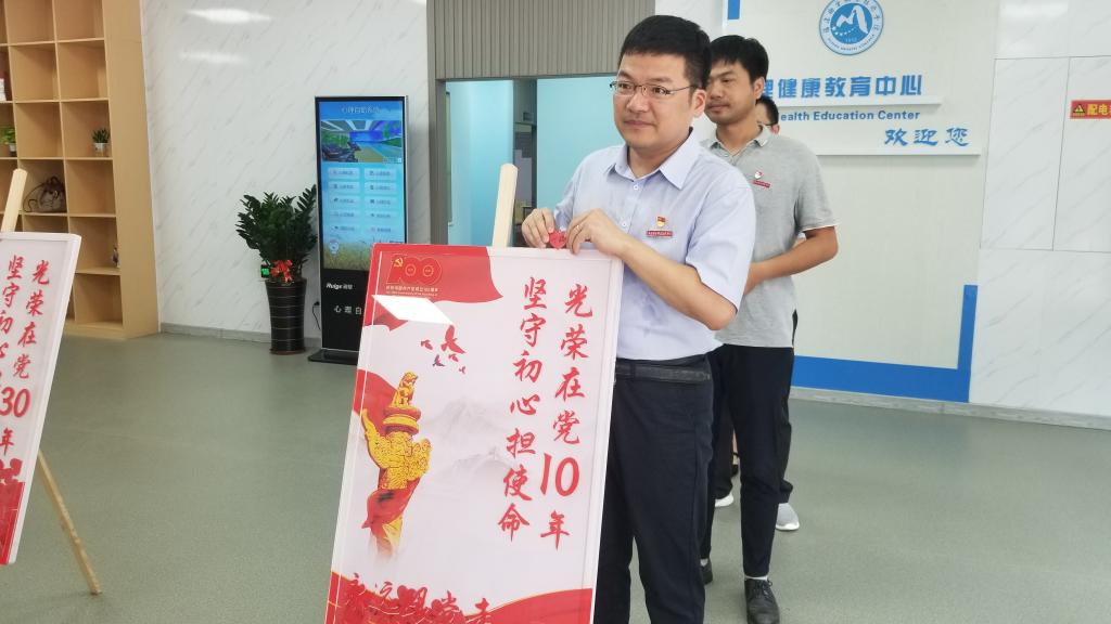 在学院党委的领导下,医学系第四党支部组织党员同志上午聚集在学生服务中心,在表明初心的名牌上庄重地写下自己的名字,然后满怀激动地将“初心”投入自己所属党龄时段的荣誉框内。