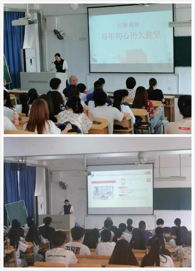 1921—2021,风雨百年路,从石库门到天安门,从兴业路到复兴路,百年大党继往开来再出发。为重温“红船精神”,回顾走过的路,医学系党总支副书记陈洁于2021年5月13日在实训楼304开展“红船精神,百年初心历久弥新”专题党课,第二党支部全体党员及入党积极分子参加了本次的党课学习。