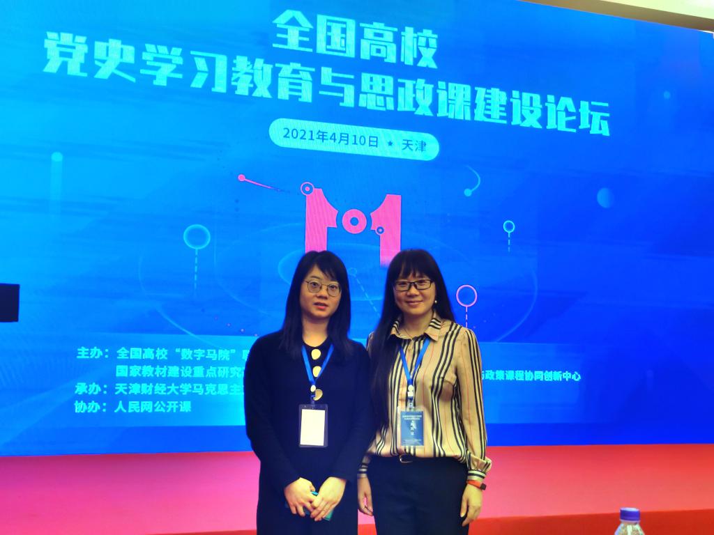 为深入学习贯彻落实习近平总书记在学校思想政治理论课教师座谈会和党史学习教育动员大会上的重要讲话精神,推进“数字马院”建设,2021年4月9日至4月11日,马克思主义学院院长熊美兰与吴薇老师赴天津参加全国高校党史学习教育与思政课建设论坛。