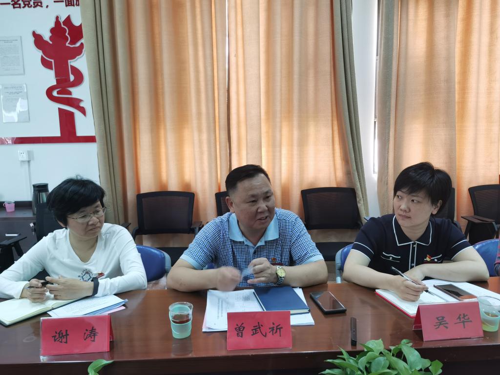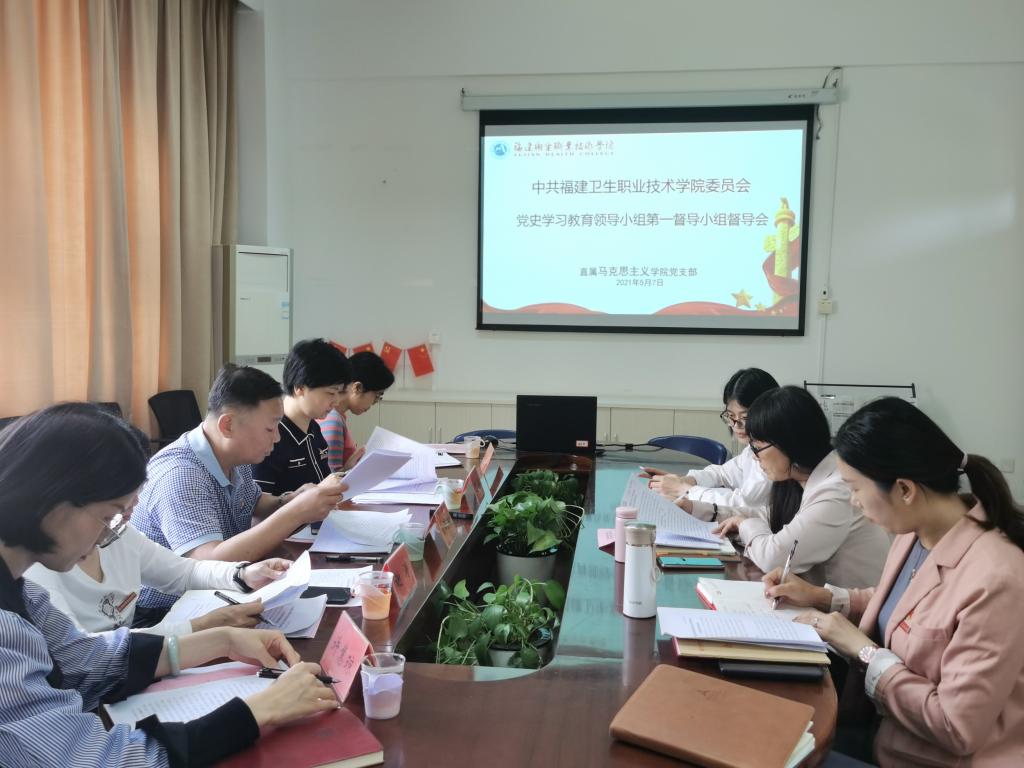 2021年5月7日上午,校党委书记曾武祈、组织统战部部长吴华、护理学院党总支书记谢涛、直属人文体育部党支部书记阮秋容和护理学院党总支专职组织员许慧琼等组成的校党委党史学习教育领导小组第一指导小组,莅临马克思主义学院进行指导。直属马克思主义学院党支部书记、党史学习教育领导小组组长熊美兰主持会议,并向指导小组汇报了马克思主义学院党史学习教育开展情况。