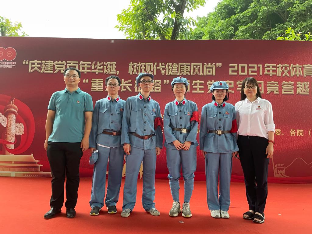 在中国共产党建党100周年来临之际,为传承党的红色基因,发扬党的优良作风,弘扬革命精神,引导广大师生积极参与体育运动,增强体魄,提高身心素质,2021年5月27日下午,学校举行“庆建党百年华诞,树现代健康风尚”2021年校体育文化节启动仪式及“重走长征路”之师生党史学习竞答越野赛。马克思主义学院院长熊美兰、参赛代表胡济林老师、颜冰凤老师、张天文老师、罗芸老师及相关教师参加了活动。