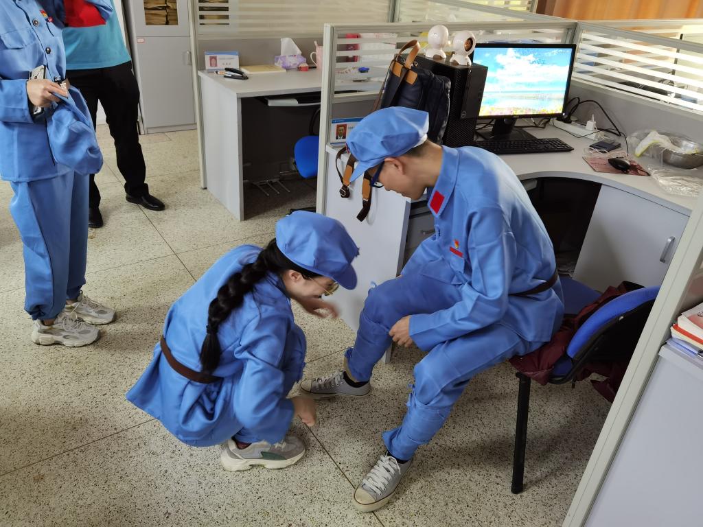 在体育文化节启动仪式现场,全体在场师生高唱国歌。一身红军服装的参赛教师党员,庄严地面向党旗,重温入党誓词。体育文化节启动仪式结束后,随即进行“重走长征路”之师生党史学习竞答越野赛。四名参赛教师不畏困难,努力拼搏,以“答党史、急行军”的特殊方式,重走长征路,重温那段可歌可泣的历史,领悟伟大的长征精神,在新的长征路上继续奋勇前进。