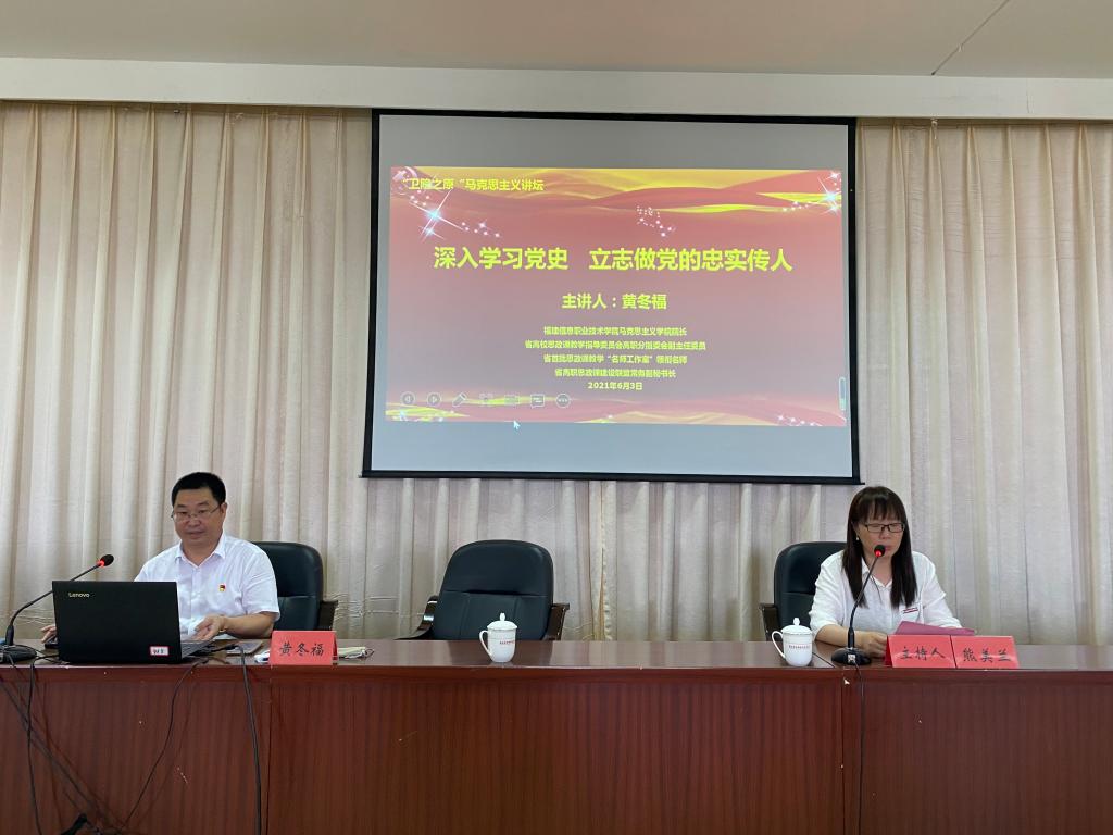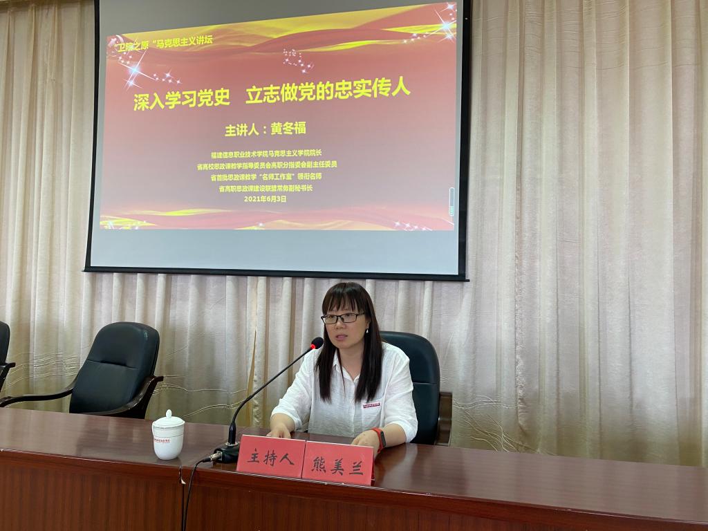 为深入学习贯彻落实习近平总书记在党史学习教育动员大会上重要讲话精神,贯彻落实省委部署的“再学习、再调研、再落实”活动,举办学党史专题学习,特别邀请福建信息职业技术学院马克思主义学院院长黄冬福于2021年6月3日来开云开展《深入学习党史 立志做党的忠实传人》的专题宣讲。讲座由开云马克思主义学院院长熊美兰主持,百余名师生参与讲座。