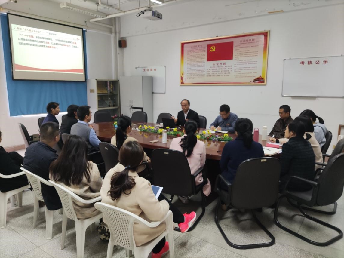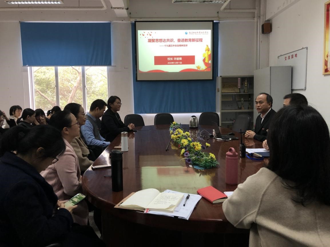 12月11日,校领导许能锋院长在医学基础部会议室作学习贯彻党的十九届五中全会精神宣讲报告。报告会由医学基础部副主任邓元荣主持。医学基础部教职工、2020级口腔301班学生代表参加报告会。