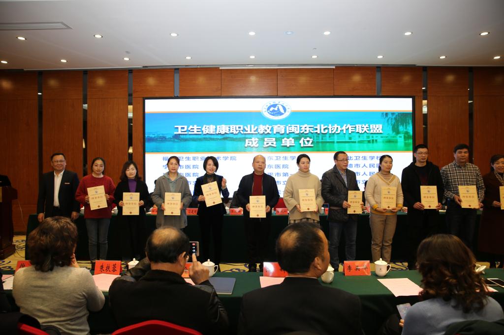 会上举行了卫生健康职业教育闽东北协作联盟成立仪式。洪涛处长、柳贵清会长、曾武祈书记、苏友新校长以及宁德市人民医院颜银斌副院长、邵武市立医院甘芝荣副院长共同按下联盟启动按钮,曾武祈书记为联盟理事单位代表颁发聘书。