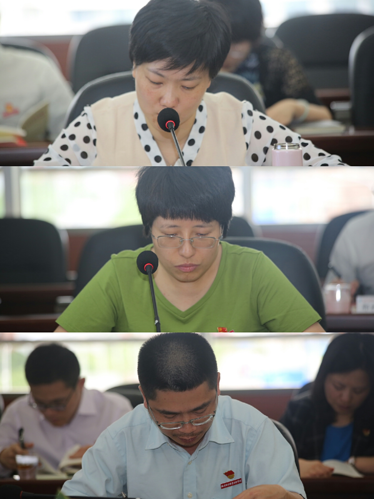 吴华、柯琼莺、林颖峰三位同志分别诵读领学《毛泽东、邓小平、江泽民、胡锦涛关于中国共产党历史论述摘编》。