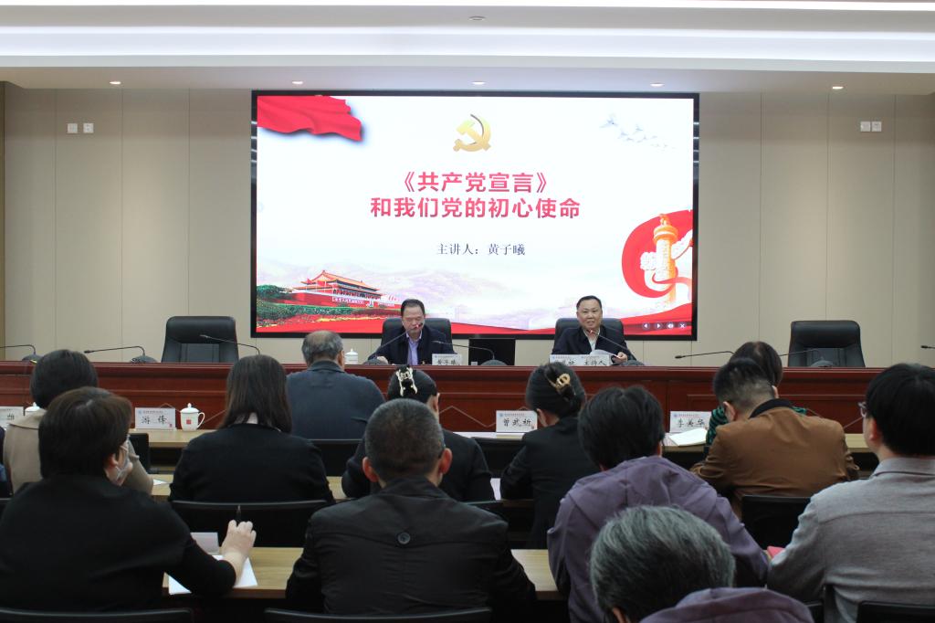 为更好理解中国共产党人的初心使命,从原著经典中不断汲取思想营养,12月14日下午,校党委书记曾武祈主持召开党委理论学习中心组(扩大)会议,邀请福建省中华职教社原党组书记黄子曦教授为我们带来《共产党宣言与我们党的初心使命》专题讲座。