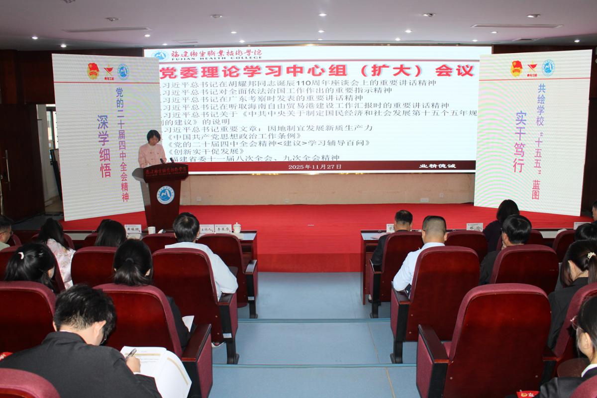 宣讲开篇,曾武祈从历史维度、战略维度、实践维度,系统阐述了党的二十届四中全会的重大意义。他强调,2025年作为“十四五”收官与“十五五”谋划的关键节点,此次全会审议通过的纲领性文件,为学校在基本实现社会主义现代化进程中找准定位、主动作为提供了根本遵循。在宣讲主体部分,曾武祈聚焦全会精神核心要义,紧扣教育强国、教育强省建设使命任务展开针对性解读,深入阐释“十五五”时期经济社会发展的指导思想、核心原则与重点部署。立足学校发展实际,曾武祈将全会精神与学校第三次党代会精神深度融合,围绕全会提出的“加快高水平科技自立自强”“统筹教育强国建设”“强化现代化建设人才支撑”等重要论述,精准剖析学校在职教底色、健康本色、服务特色等方面的优势和职责使命,明确学校未来五至十年特别是“十五五”时期的发展思路和重点任务。