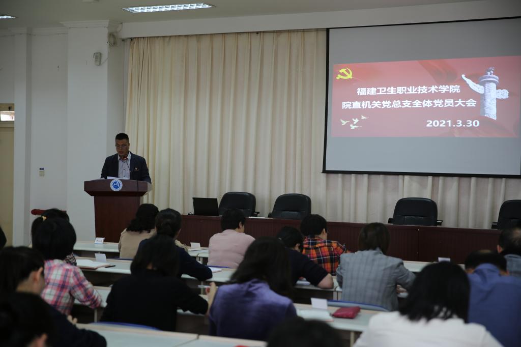 会议伊始,院直机关党总支书记艾松军同志向与会党员介绍了新一届院直机关党总支委员及职责分工。随后艾松军同志作院直机关党总支开展党史学习教育的动员部署,传达了3月17日学校召开的党史学习教育动员大会的主要精神;并强调,在全党开展党史学习教育,是党的政治生活中的一件大事。党总支全体党员要把党史学习教育作为贯穿今年全年的一项重大政治任务,提高政治站位,坚定理想信念,增强机关人员服务基层、服务一线的意识,激发真抓实干的责任担当,把党史学习教育成果转化为工作动力和成效。