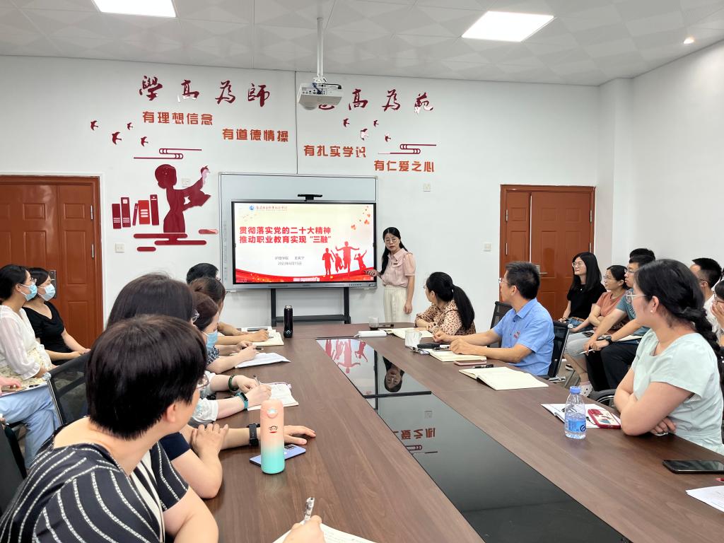 根据学校学习贯彻习近平新时代中国特色社会主义思想主题教育工作安排,6月15日下午,护理学院副院长王宪宁以《贯彻落实党的二十大精神,推动职业教育实现“三融”》为题,为护理学院全体教师讲授党课。