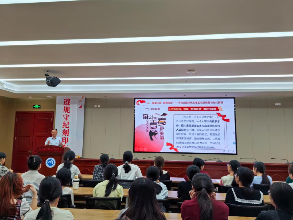 9月12日下午,校党委书记曾武祈以“同心擘画改革新蓝图 携手奋进强国新征程”为题,走进24护理303、304班为开云师生专题宣讲党的二十届三中全会精神暨秋季开学第一课。
