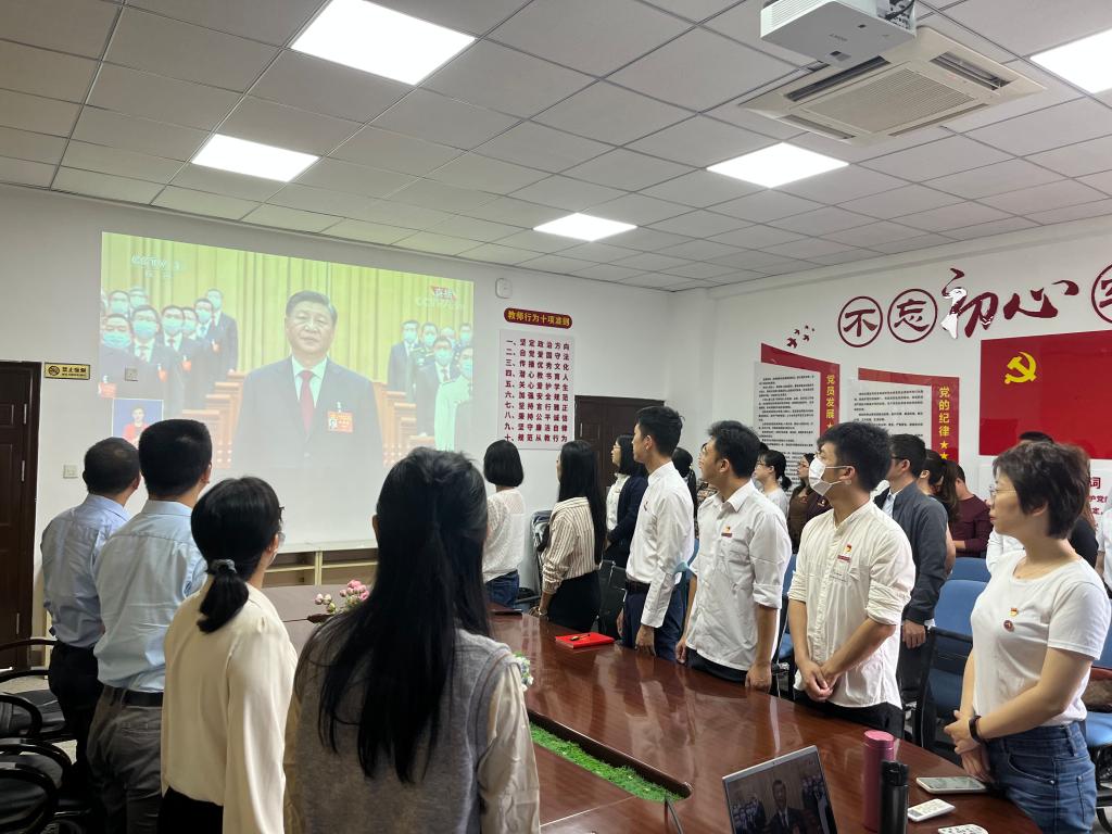 2022年10月16日,中国共产党第二十次全国代表大会在人民大会堂开幕。药学院党总支组织全体党员集中207会议室,全体分党校学员、团学干部集中药二阶,同步收看开幕会现场直播。