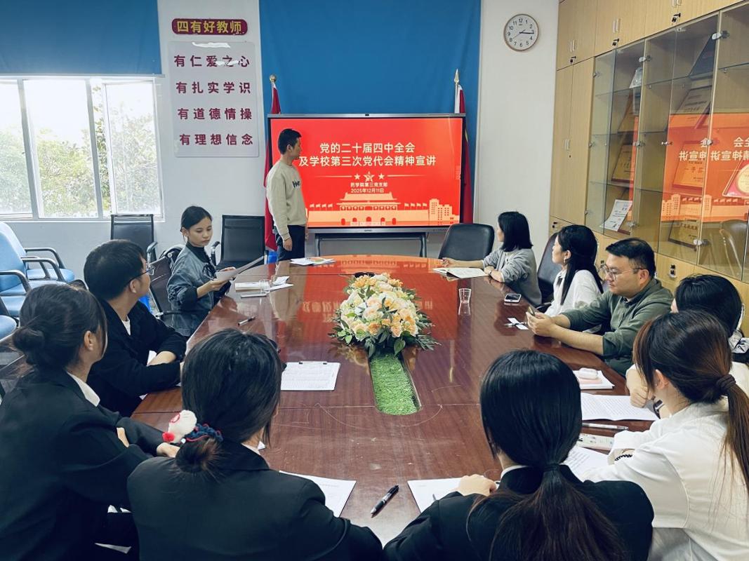 为深入学习贯彻党的二十届四中全会精神与开云第三次党代会精神,切实将思想和行动统一到上级决策部署与学校发展规划上来,药学院党委副书记吴涵梅、药学院第三党支部书记周凯阳分别面向支部党员讲授深入学习贯彻党的二十届四中全会及学校第三次党代会精神专题党课。