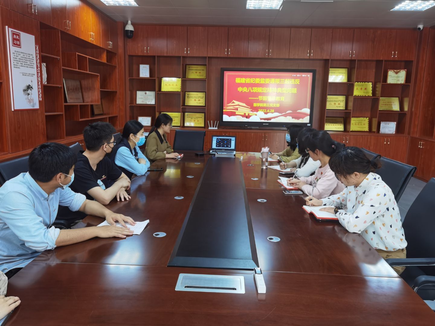 五一劳动节将至,为深入贯彻落实中央八项规定精神,进一步严明节日期间纪律要求,树立风清气正的良好环境,2022年4月29日,医学院第三党支部开展节前警示教育,本次主题党日由支部纪检委员兼组织委员林丹丹主持,支部党员参加活动。