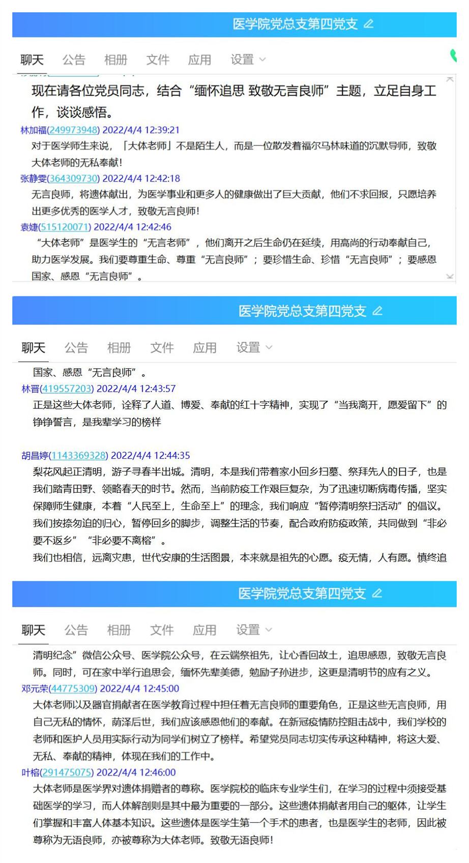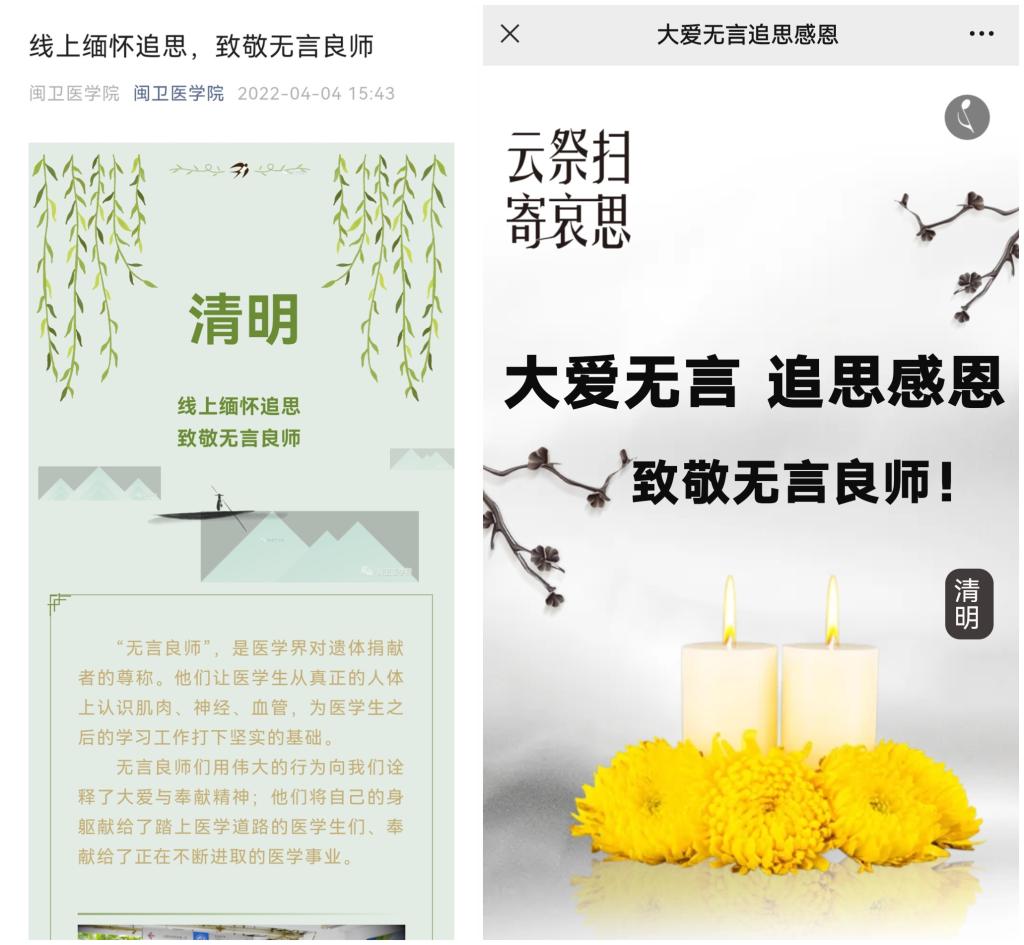 在本次活动前期,支部制作了专题追思推文,及线上云祭扫链接,发布于医学院公众号,支部各位党员同志、解剖学教研室教师通过转发宣传,号召各班级同学学习缅怀。活动一上线,就得到了同学们的积极参与。