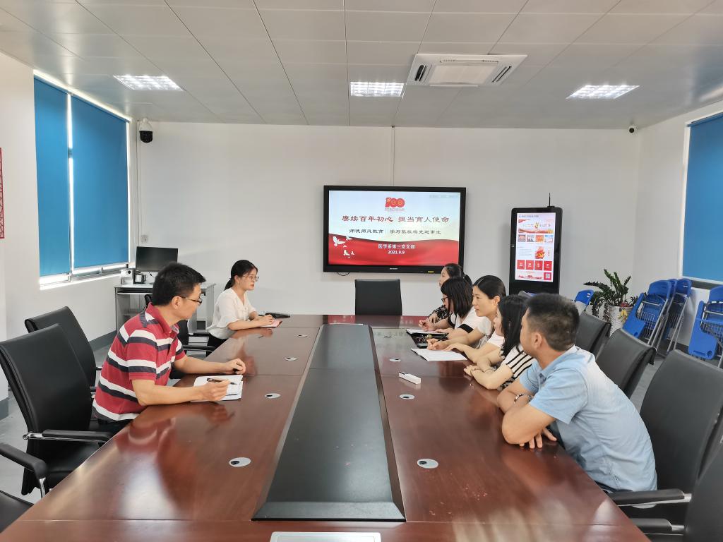 为加强支部师德师风建设,激励支部党员教师坚守教育初心,牢记立德树人使命,2021年9月9日中午,医学系第三党支部在实训楼311开展“赓续百年初心,担当育人使命”主题师德师风教育,组织支部党员们一同观看全国“时代楷模”——张桂梅同志先进事迹纪录片。