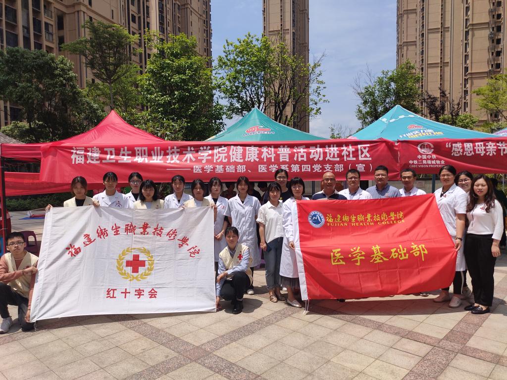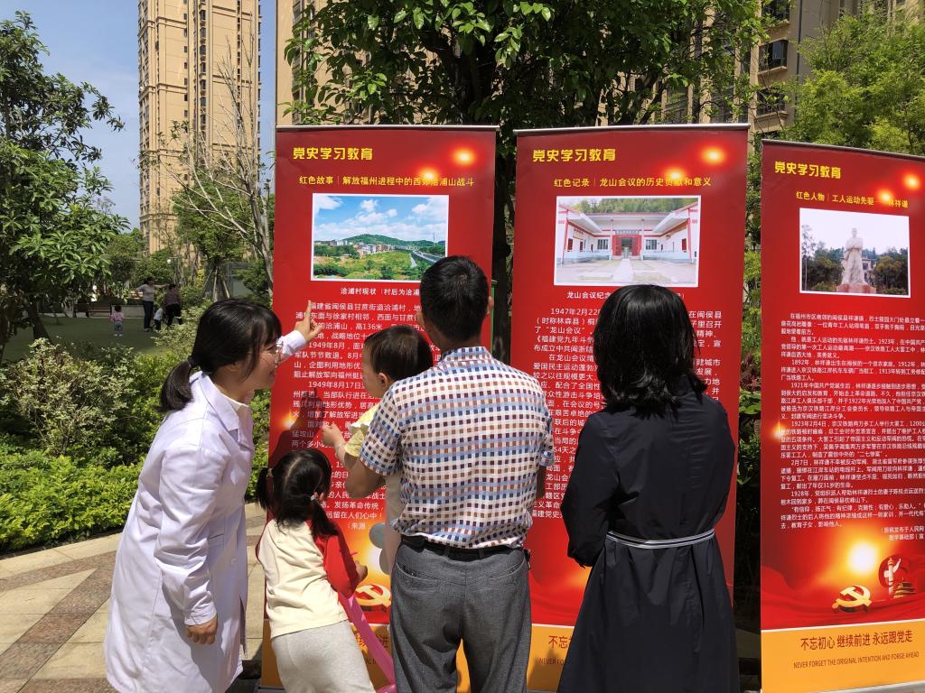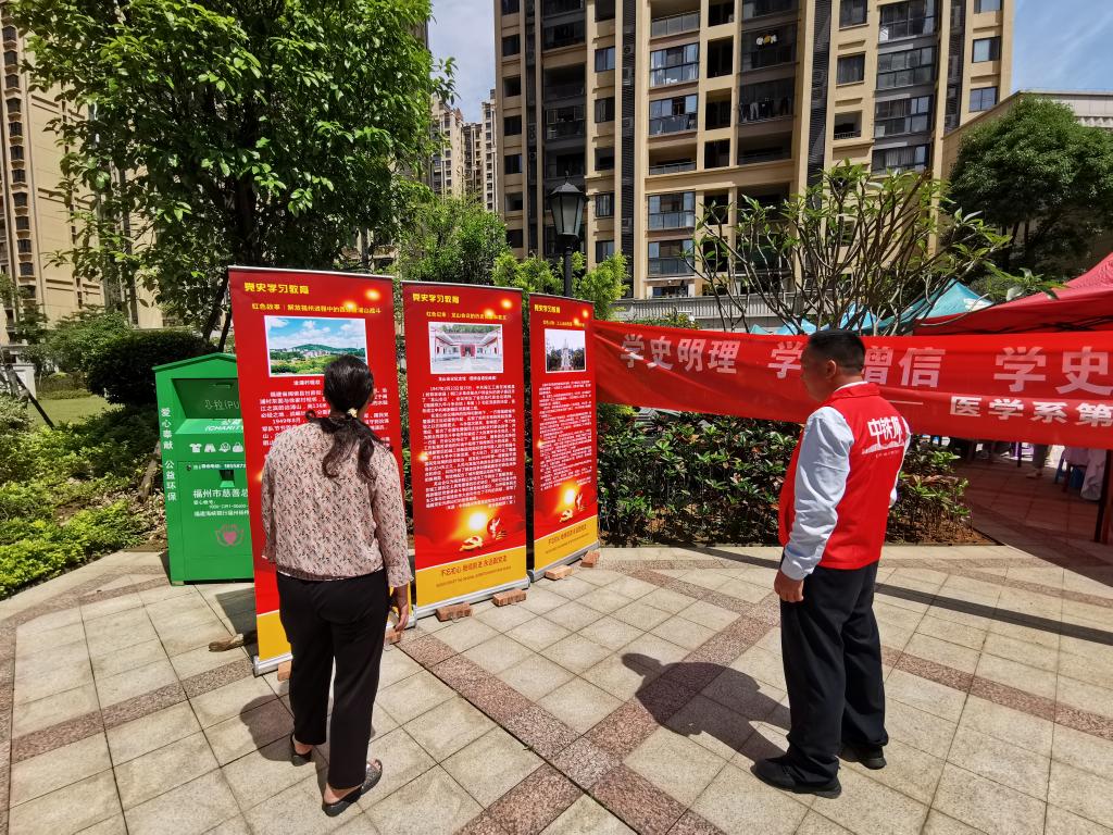 为贯彻落实习近平总书记来闽考察重要讲话精神,扎实开展“再学习、再调研、再落实”活动,发挥“双带头人”教师党支部工作室辐射作用,结合2021年全国科技活动周的通知要求, 2021年5月9日,医学系第四党支部教师党员、医学基础部部分教师和院红十字会青年团员到闽侯荆溪社区中铁城,为社区居民宣扬党史学习,开展健康科普进社区主题党日活动。