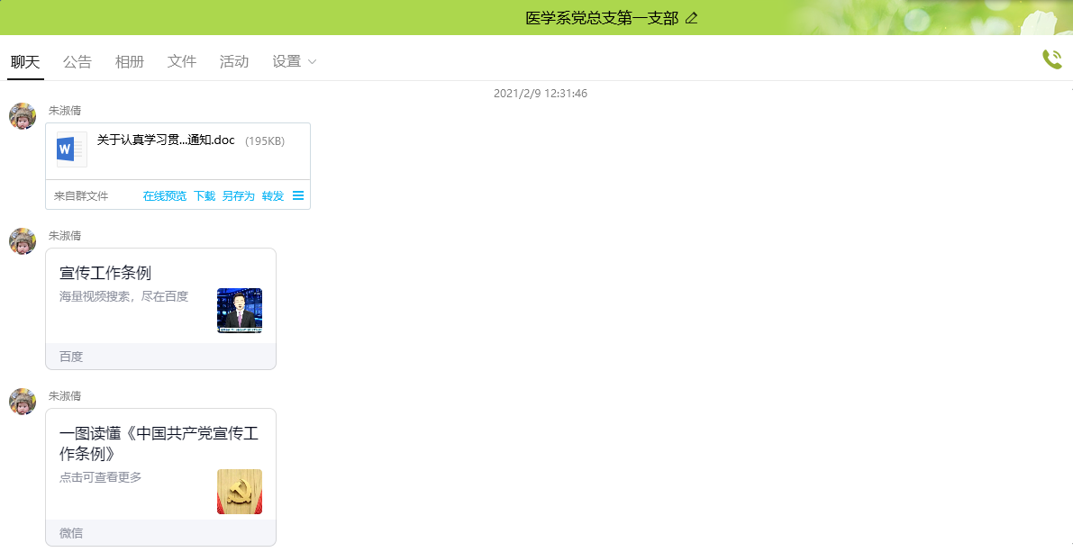 为提高全体党员的政治意识和宣传工作水平,2月9日下午,医学系第一党支部组织全体党员开展线上学习《中国共产党宣传工作条例》(以下简称《条例》)主题党日活动,由支部书记朱翔同志主持。