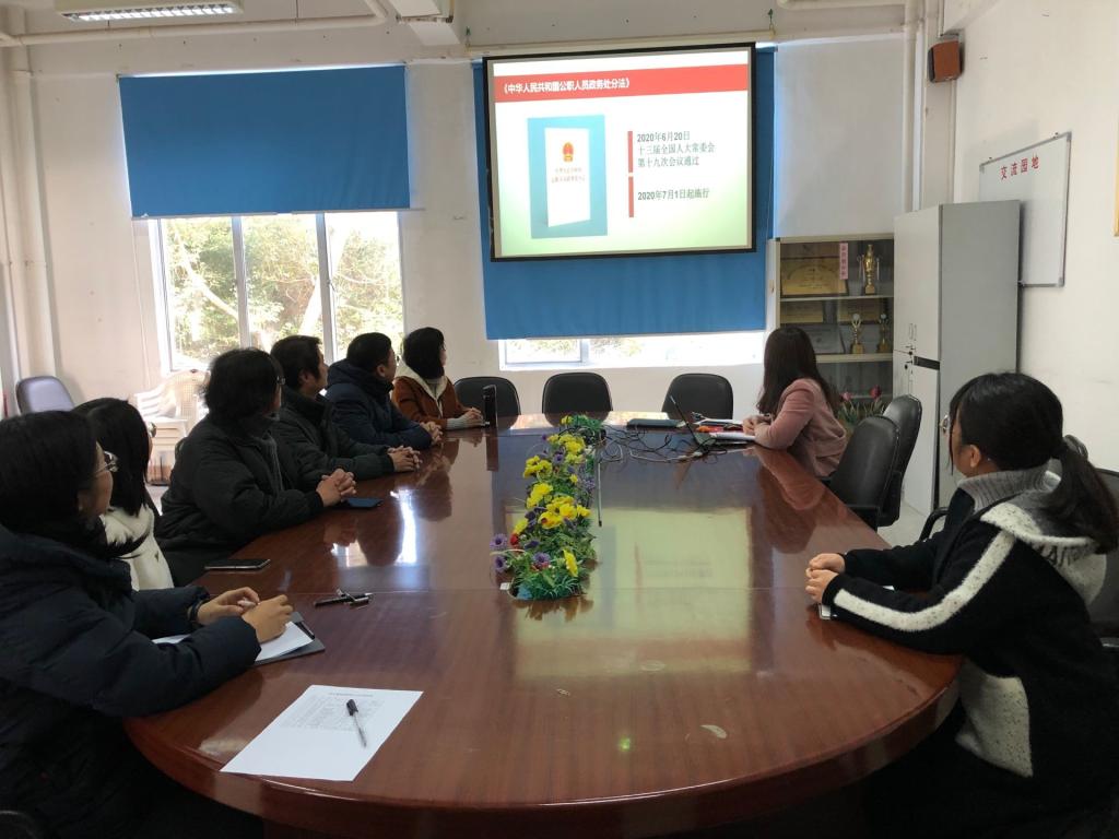 首先,支部组织委员兼纪检委员胡昌婷同志带领大家学习《中华人民共和国公职人员政务处分法》(以下简称《政务处分法》),主要学习《政务处分法》制定的背景和意义,适用对象和基本原则、政务处分种类和适用规则、公职人员违法行为及其适用的处分、政务处分的程序等主要内容,以及如何抓好《政务处分法》的贯彻执行。在学习过程中,结合《中国共产党纪律处分条例》、《中华人民共和国监察法》等党规党纪和国家法律法规进行学习,做到学深悟透、知行合一。