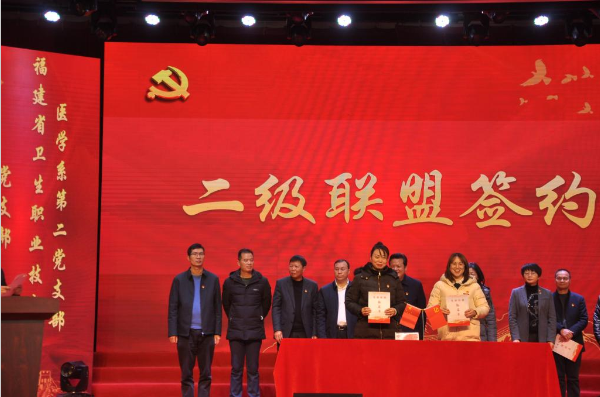 为深入贯彻落实新时代党的建设总要求,增强基层党组织的创造力、凝聚力、战斗力,进一步加强校地企合作,扎实开展党建共建工作。12月31日上午,我系党总支书记邱滚忠、第一党支部书记朱翔、第二党支部书记高长花一同前往福建技师学院参加荆溪镇党建联盟签约仪式。仪式由荆溪镇党委书记胡清铨主持,福建省人力资源和社会保障厅党组成员、副厅长洪长春,机关党委专职副书记李梅,闽侯县副县长余深传,县人力资源和社会保障局党组书记、局长杨芬,县委组织部副部长余建敏莅临签约仪式。