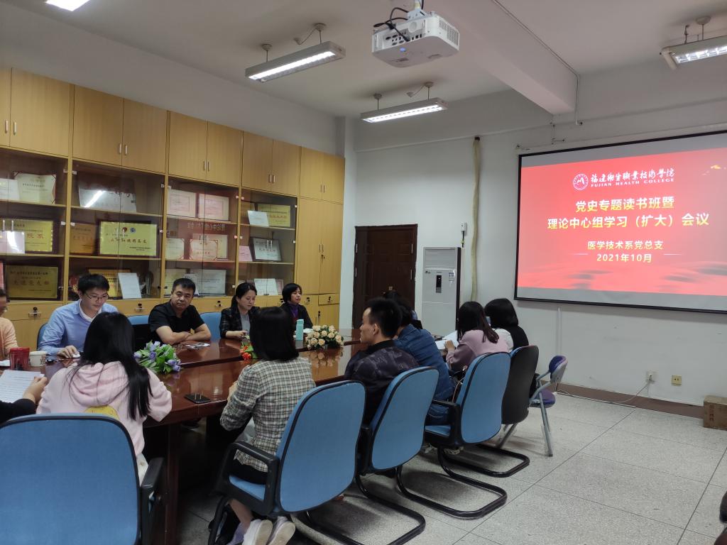 10月21日,医学技术系党总支召开党史专题读书班第五次学习暨理论学习中心组(扩大)会议。会议由医学技术系党总支书记陈俊颖同志主持,医学技术系领导班子、党总支委员、党支部书记、教研室主任、团总支书记、系办人员、实训中心人员及辅导员等参加了会议。