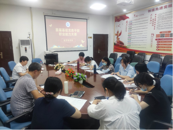 为迎接党的二十大胜利召开,深入学习习近平总书记关于高校党的建设重要论述,根据学校党委部署和组织部要求,9月30日,医学技术系党总支在系部301会议室开展首届基层党务干部职业能力大赛初赛。