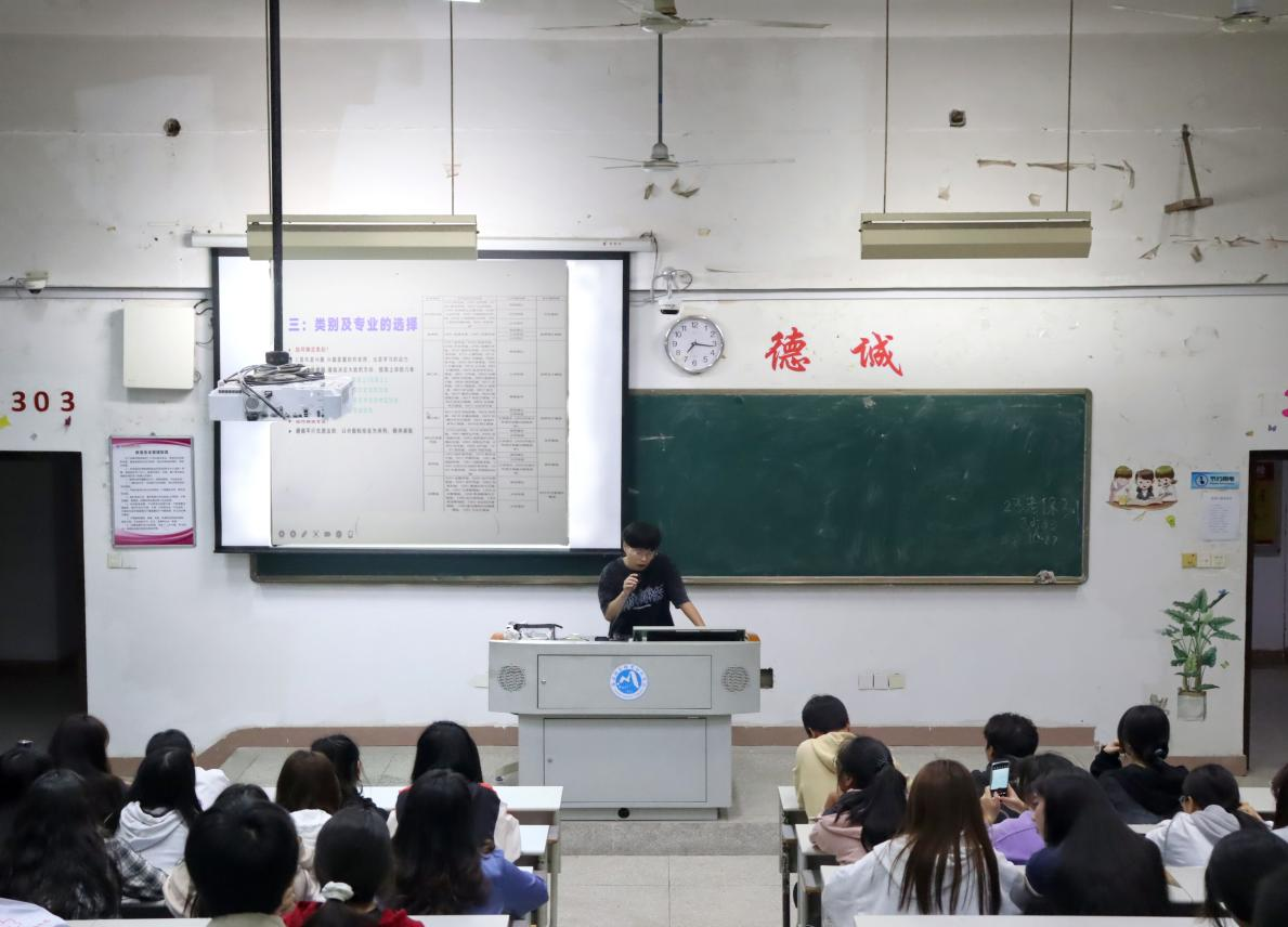 在类别及专业选择的时候,余建雄结合自己的经历及思考,提醒学弟学妹们,有时候选择比努力更重要。他从个人兴趣及个人基础方面进行分析,引导学弟学妹们如果决定跨考,一定要结合自己的兴趣爱好,人只有从事自己热爱的工作才能挖掘出自己的潜能。个人基础决定报考的大致方向,这样才能提高上岸的几率,如高中理科数学好,推荐报考理工类,高中文科语文好推荐文史或教育类,专业课成绩靠前则推荐医学或农林生物类等。在填报专业的时候,他结合院校、专业的优劣势进行分析,引导学弟学妹们既要考虑到未来的规划,也要考虑当前的现实经济条件。