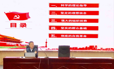 陈贞健分别从“科学的理论指导”、“坚定的理想信念”、“强大的组织优势”、“坚定的群众基础”、“彻底的自我革命”五个维度来讲解中国共产党成立以来中华民族迎来了从站起来、富起来到强起来的伟大飞跃,创造了让世界惊叹的“中国奇迹”。特别是在改革开放以来,在变幻莫测的国际环境里,在党的领导下,我们有力应变局、平风波、战洪水、抗地震、抗击新冠肺炎疫情等,在艰难中磨砺成长,走向强大。充分体现了社会主义制度的优越性,也充分体现了我们党的强大领导能力。