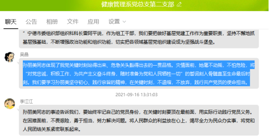 大家纷纷表示,这次活动让自己深受感动,深受教育,孙丽美同志始终把对党忠诚、人民至上融入到精神血脉中,用生命诠释了共产党人甘于牺牲奉献的崇高品格。今后要以孙丽美同志为榜样,把学习成效转化为实际行动。