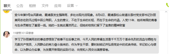 教师党员吴晶表示,孙丽美同志身上体现了我党关键时刻站得出来、危急关头豁得出去的一贯品格。灾情面前,她毫不动摇,不怕危险,将“对党忠诚,积极工作,为共产主义奋斗终身,随时准备为党和人民牺牲一切”的誓词刻入骨髓直至生命最后时刻。我们要学习孙丽美坚守初心、践行宗旨的精神,在关键时刻,不退缩,不放弃,践行共产党员的使命担当。