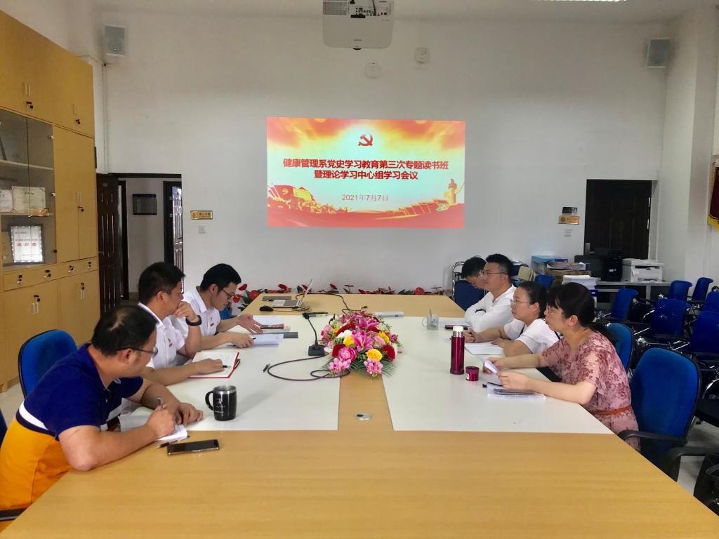 2021年7月7日,健康管理系党史学习教育读书班第三次学习暨中心组学习会在会议室505召开专题学习,本次学习会议由健康管理系党总支书记黄曦主持。