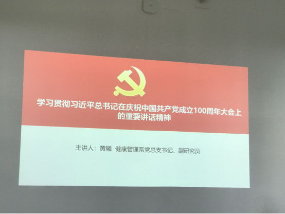 回望百年奋斗路,砥砺奋进新征程。为深入推进党史学习教育,重温党的光辉历程,传承红色基因,赓续红色血脉,2021年9月30日,在健康管理系系部会议室,健康管理系党总支黄曦书记为健康管理系党总支第二支部上党课。