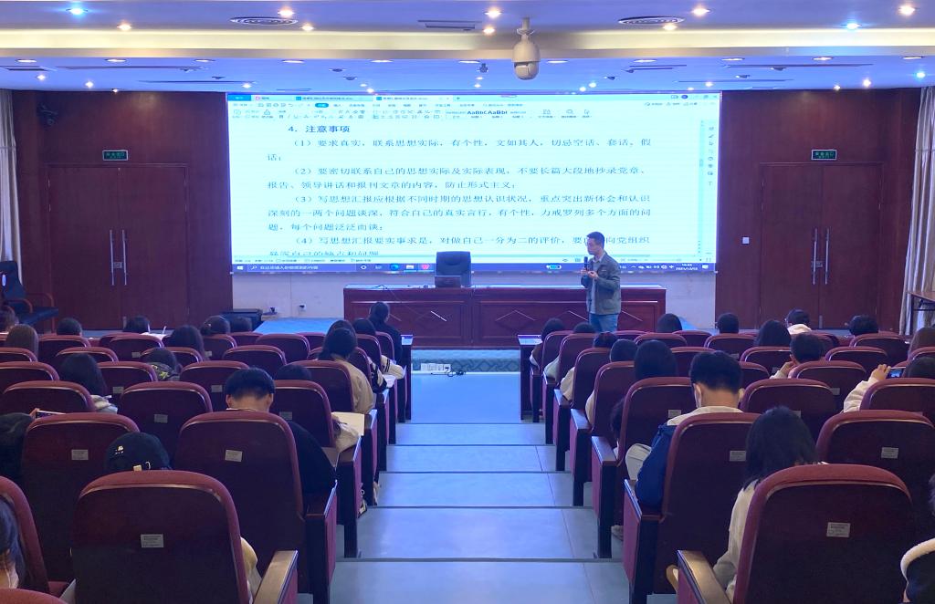 为使入党积极分子更加了解中国共产党党员发展流程及其培养考察的内容,2021年12月12日晚上健康管理系业余分党校第八期培训班暨青马工程培训班第二课在实训楼四楼报告厅举行。本次授课由健康管理系专职组织员许晓湖主讲,为同学们带来了一次精彩生动的党课。