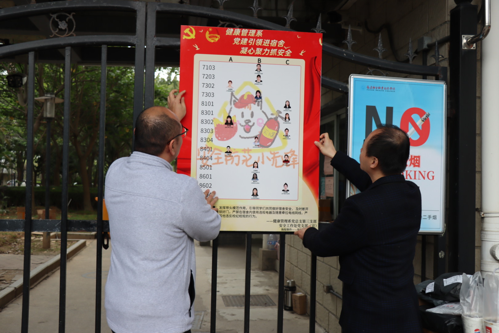 为全面推进基层党组织建设,通过党建引领助推学生工作,教育引导学生提高宿舍安全防范意识。12月28日,健康管理系党总支第三支部与院直安全工作处党支部联合开展以“党建引领进宿舍,凝心聚力抓安全”为主题党日活动,共同探索 “党建引领进宿舍”工作机制,共同设立25个由学生党员和入党积极分子任职的“安全防范先锋岗”,覆盖健康管理系各年级宿舍,旨在让学生党员和入党积极分子自我规范宿舍安全行为,接受群众监督。安全小先锋们将定期在学生宿舍区开展安全主题宣传,深入宿舍引导教育,引导其他同学以实际行动打造安全、文明、卫生的宿舍生活环境,树立标杆形象,以点带面,以新担当新作为奋进新时代。