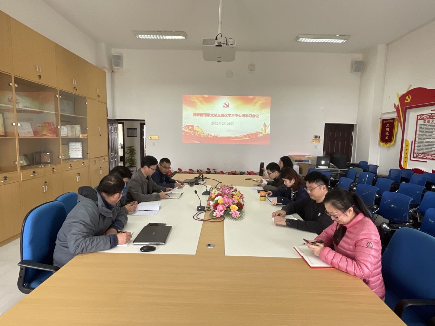 2022年2月28日上午,在系部会议室召开健康管理系党总支2022年第2次理论学习中心组会议,本次会议由健康管理系党总支书记叶海主持。