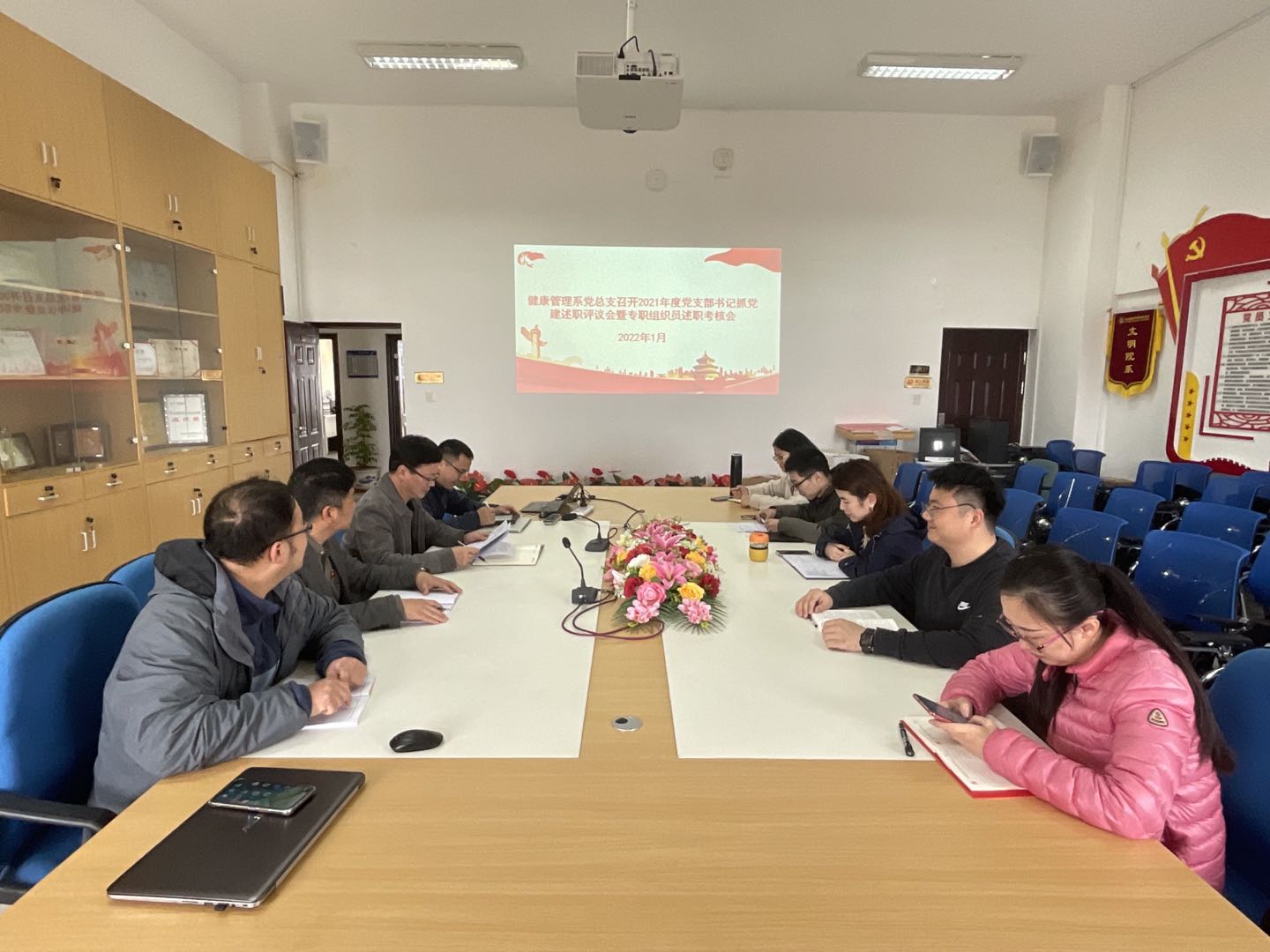 2022年1月18日,健康管理系党总支在系部会议室召开2021年度党支部书记抓党建述职评议会和专职组织员述职考核会,健康管理系党总支委员、系领导、支部书记、专职组织员以及教师代表参与会议,会议由健康管理系党总支书记叶海主持。