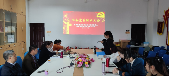 2021年12月27日,健康管理系党总支第一党支部举行预备党员转正大会,大会讨论并审议预备党员邱多多等三位同志转为正式党员问题,全体支部党员参加会议。