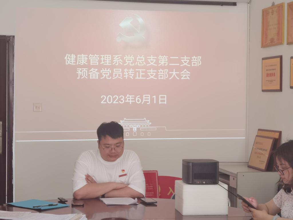 2023年6月1日,健康管理系党总支第二党支部在图书馆会议室举行预备党员转正大会。