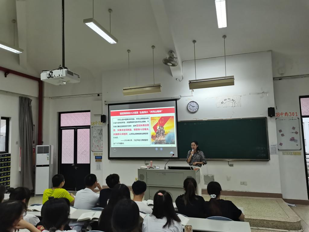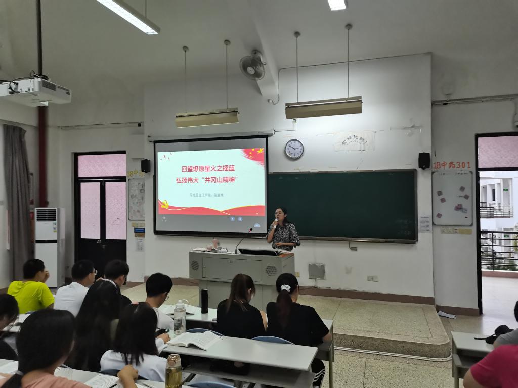 2021年5月18日下午,马克思主义学院张茵珠老师在教学楼309教室为20药学301-302、针推302班作《回望燎原星火之摇篮 弘扬伟大“井冈山精神”》专题宣讲。张茵珠老师通过讲述国民革命失败后,以毛泽东同志、朱德同志为代表的老一辈无产阶级革命家,在秋收起义和南昌起义遭到严重挫折的情况下,如何审时度势,率领工农革命军进军井冈山,带领同学们一起学习八百里巍峨井冈山创造的伟大的井冈山精神,以及在新时代如何弘扬和发展井冈山精神。